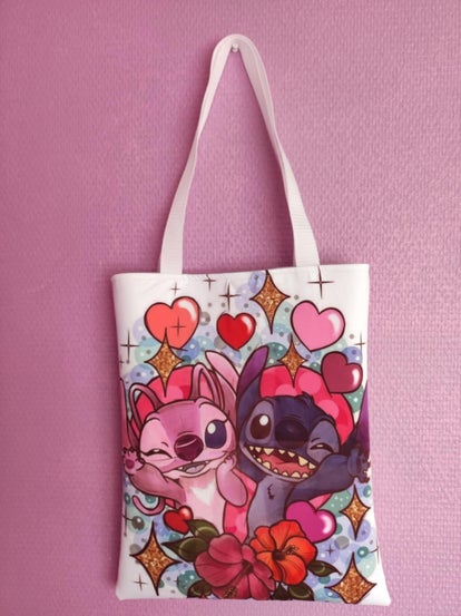 Le devant est imprimé en sublimation et le dos du sac simili cuir blanc sac doublé